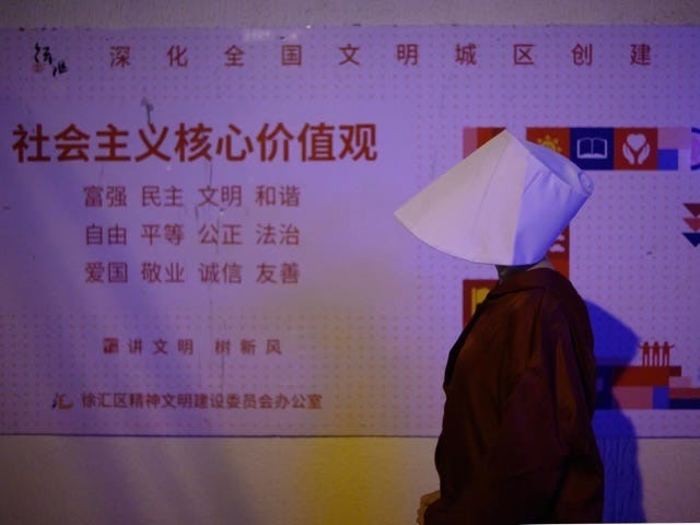 在这个稍纵即逝的时空里,每个人仿佛都充分拥抱着自由的“假象”,将那根心照不宣的“红线”向前推移。通过社交媒体的传播,更多人看到了行走的大号监控探头、挂着“打倒程蝶衣(电影《霸王别姬》经典角色)”牌子游街的京剧名伶,因形似习近平而早已在公共场所“敏感化”的小熊维尼,当然还有“白纸女孩”……很快它们又在“墙内”网络上消失得无影无踪。