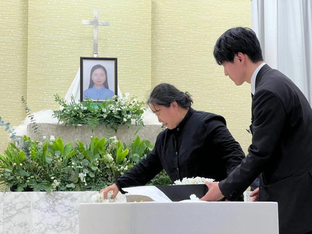 举行葬礼的殡仪馆靠近御花茶屋站。据传,幕府时期的一位将军因打猎时胃痛在此休息,受到茶屋老板的女儿悉心照料后痊愈,便以她的名字“花”将茶屋更名。葬礼上,唐正琪生前在日语学校的同窗友人未见出席,只有班主任老师来到葬礼现场,对于未能帮助她圆大学梦深表遗憾。